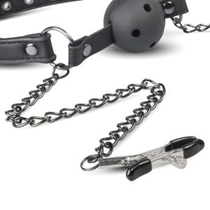 Кляп з зажимами на соски Open Ball Gag With Nipple Clamps