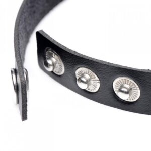 Создайте провокационный образ с помощью необычного аксессуара в стиле БДСМ, купите чокер из экокожи Bijoux Indiscrets Maze – Single Choker Black. Простое и элегантное украшение из переработанного полиуретана, в сочетании с металлическими заклепками и кольцом, станет скандальным завершающим штрихом смелого сексуального наряда для эротических игр или тематической вечеринки.