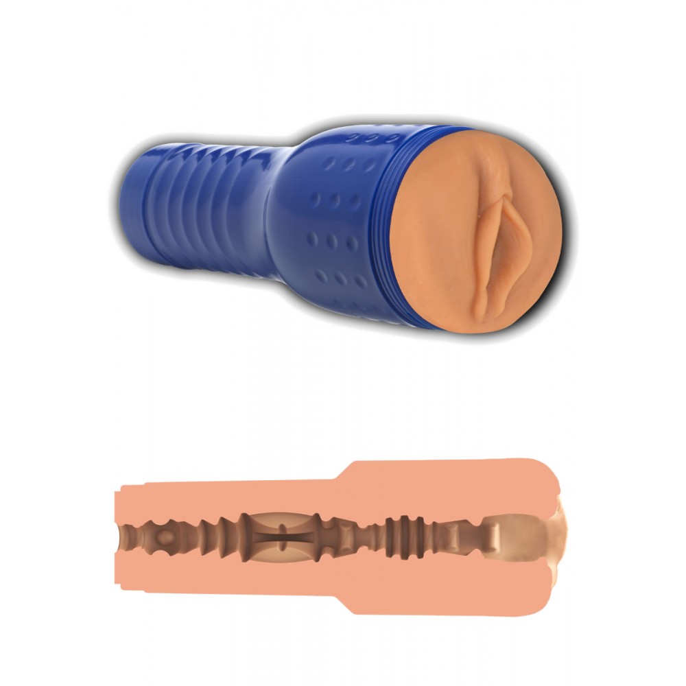 Мастурбатор реалістичний у вигляді вагіни в синій колбі Private бежевий, 26 х 8.5 см