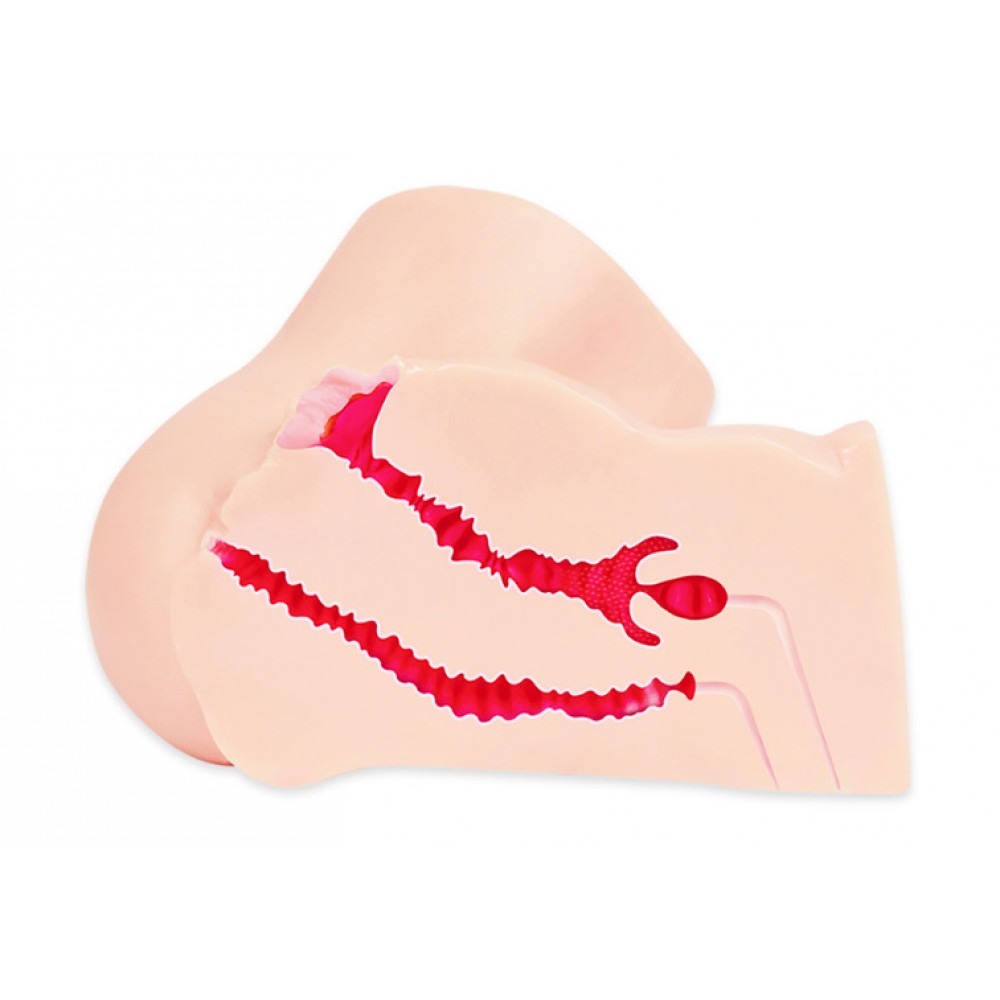 Мастурбатор полуторс реалістичний з анальним та вагінальним отворами Kokos Adel Onahole 001, з кібершкіри, бежевий.