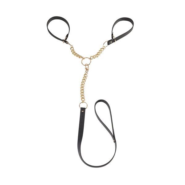 Предлагаем купить наручники с поводком Indiscrets MAZE – T-Restraints Black: изящный аксессуар из ремней и цепочки, который сделает ваши эротические игры еще более горячими. Ширина наручников свободная и зависит от натяжения поводка, который, к тому же, еще и съемный.